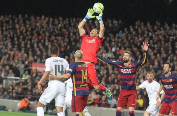 下半场开局阶段,双方攻防节奏明显加快。第51分钟,皇马发动反击,本泽马禁区内踩单车后打门被皮克倒地封堵,马塞洛跟进补射再被挡出-5。第54分钟,苏亚雷斯回做中路,梅西禁区弧顶搓射右上角,纳瓦斯再次飞身将球扑出-5。
