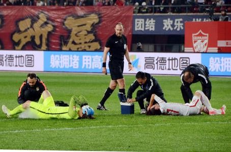 随后比赛节奏逐渐加快,权健以连续的中前场逼抢和快速冲击掌控了主动权,辽足难以形成有效推进。看台上,权健球迷的鼓点越来越密,“天津!天津!”的呐喊声一波高过一波。第20分钟,转折点到来——郑达伦沿中路带球快速突破,辽足王峤在禁区弧顶附近伸腿将他绊倒。主裁判鸣哨指向犯规地点,郑达伦倒地后抱着小腿翻滚了两圈,但很快咬牙站起,主罚任意球的机会交给李星灿。