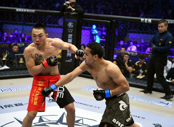 北京时间2017年4月28日,《勇士的荣耀》承德站在承德市奥体中心体育馆开战,K-1世界冠军魏锐迎战泰国迦南侬拳场冠军那诺。第二回合开局,魏锐连续两次低扫重创对手,裁判终止比赛判罚TKO,魏锐延续对泰拳手不败战绩。-12这是魏锐2017年八连胜征程中的关键一役,也是其“妖刀”腿法杀伤力的最佳注脚。
