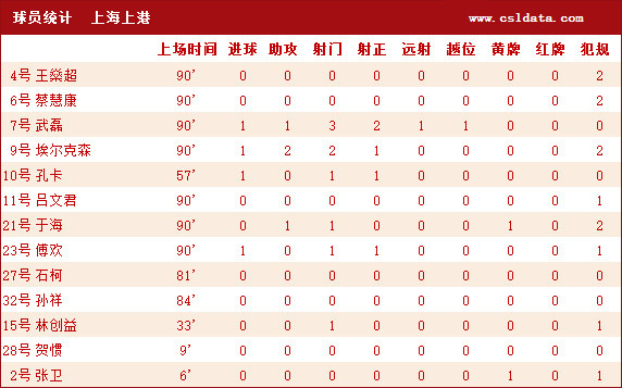 失利方(沧州雄狮): 前锋刘鑫瑜是沧州全场唯一亮点,他在第30分钟利用反击机会单刀挑射扳平比分,一度让客队看到取分的希望。-21-门将邵璞亮虽然把守的球门被四度洞穿,但全场比赛做出多次关键扑救,若非他的高接低挡,沧州失球数恐将更大。-但沧州中场失控问题突出,全场控球率仅29%,无法有效组织进攻,防线在海港持续高压下屡屡暴露空当。-